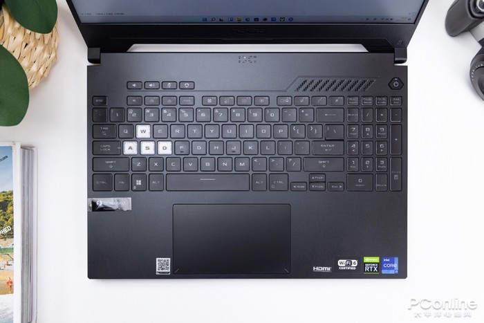 華碩天選3更多的變化還體現在細節之處,不得不說,華碩對模具設計還是做了大量優化和調整。例如C面拉絲式設計變成了磨砂設計;下沉式鍵盤變為純平,更顯簡約;增加了一個四向指示燈,隨時一眼就能了解整機運行狀態;分體式觸控板變成了面積更大的一體式觸控板;“L”型空格鍵變成了“一”字型空格鍵……