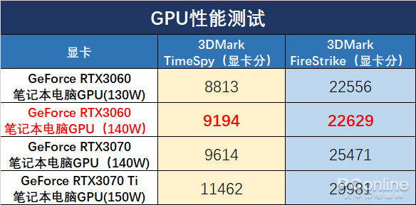 雖然在CPU方面,今年英特爾帶來了性能巨幅提升的12代酷睿處理器,但GPU方面仍未迎來跨越性的升級。顯卡仍然是GeForce RTX 3060獨立顯卡,只不過這次可以通過NVIDIA Dynamic Boost功能將功耗從115W提升到140W(相比以往130W滿功耗的版本還要高出10W),因此性能最終也得到了同比約4%的提升。