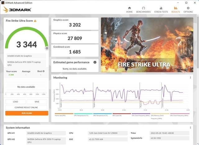 我拿到的華碩凌瑤X雙屏Pro 2022是高配版,搭載英特爾酷睿第十二代i9-12900H標準電壓處理器+RTX 3050Ti筆記本電腦GPU。
