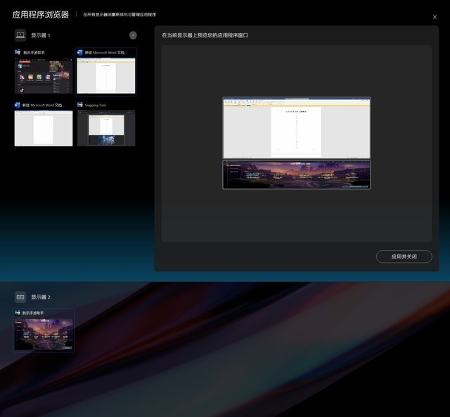 應用導航器可以設置每個應用在哪個屏幕上顯示,一鍵將主屏所有窗口移動到副屏。