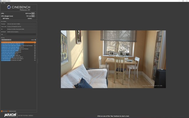 CINEBENCH R20:單核性能731cb,多核性能6214cb;