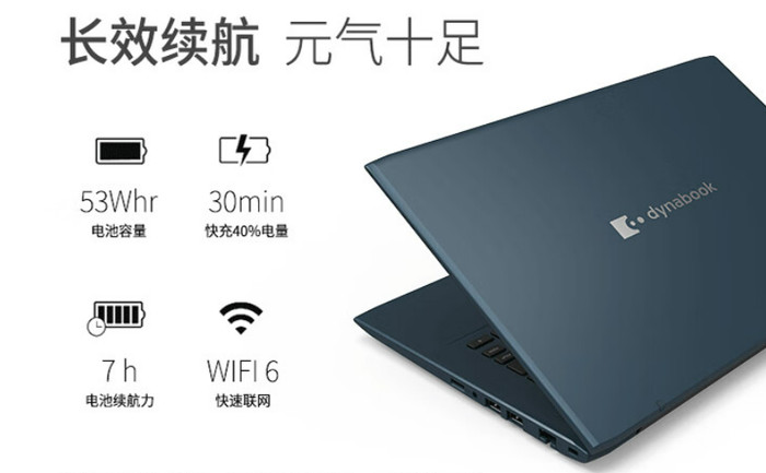 dynabook CS40L-K內置了53Whr的電池容量,能提供7小時續航時間,還能支持30分鐘可將電量從0充到40%的快充技術,讓你隨時隨地安心學習,不被續航焦慮所打擾。
